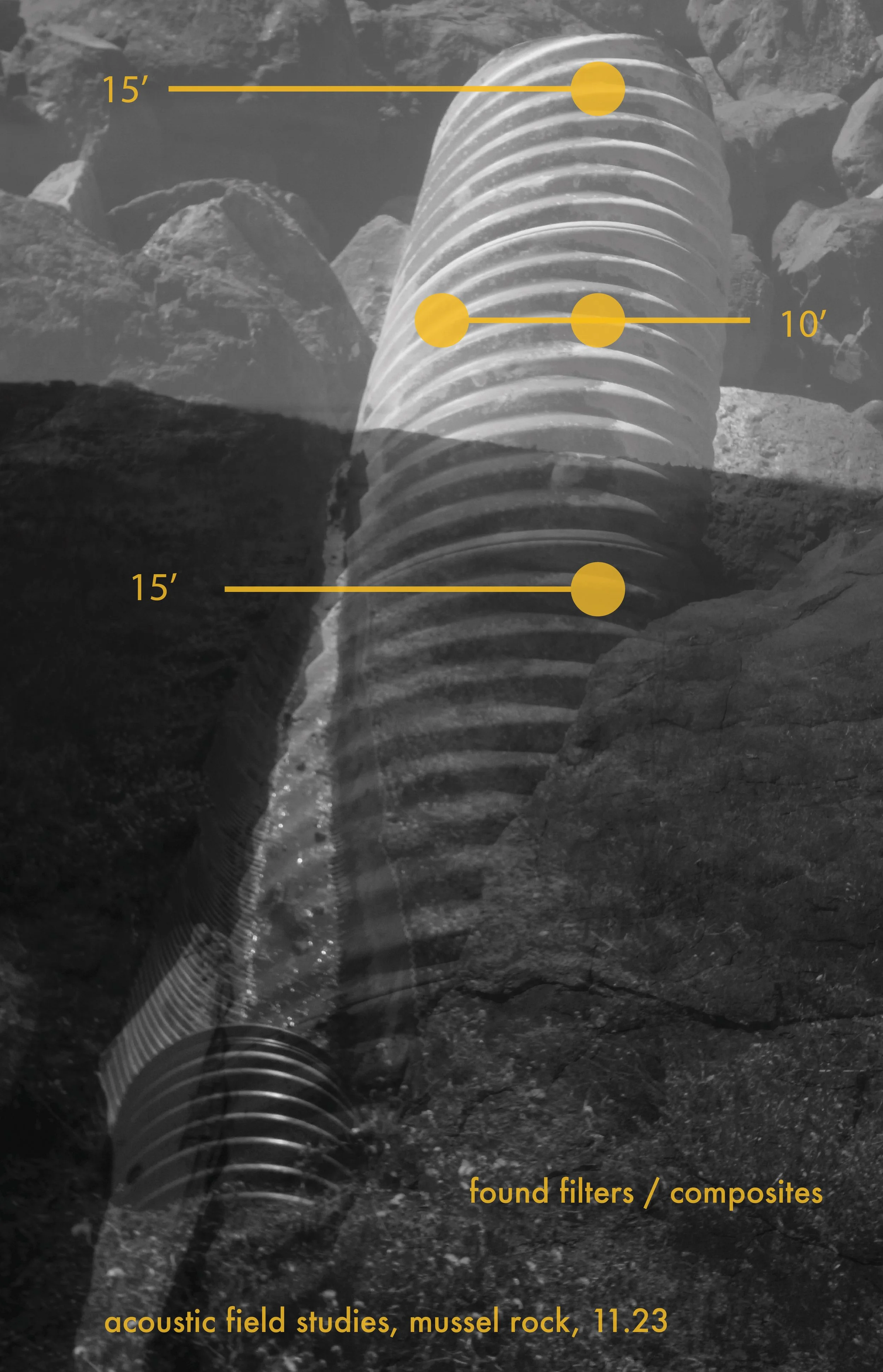 photo collage and schematic graphics function as experimental field notes from recording outings and also as scores playable as instruction for microphone placement, listening positions, body movements in situ, or musical interpretations. in this way, the scores document work already made and generate new work with possibilities for solo and collaborative processes.